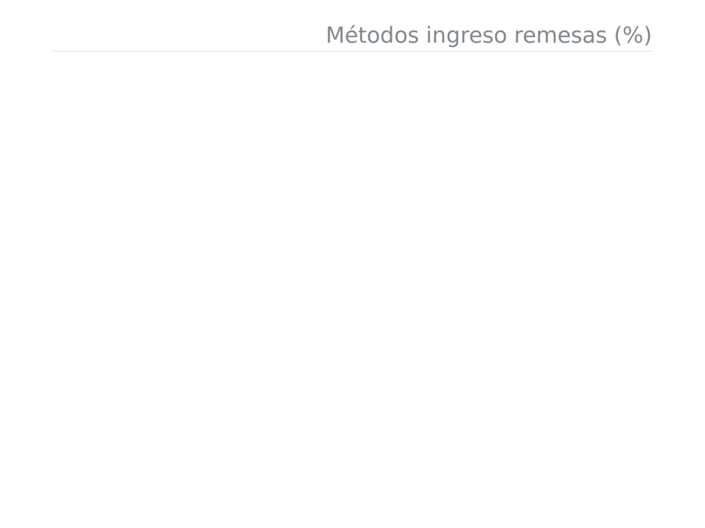 El 98.9 por ciento del total de los ingresos por remesas fueron realizados a través de transferencias electrónicas, porcentaje equivalente a 24 mil 397 millones de dólares. Por su parte, aquellas remesas efecutadas por efectivo y especie; así como las money orders fueron del 0.9 y 0.2 por ciento del monto total, respectivamente.