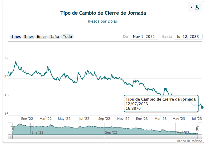Ciudad de México, 12 de julio (SinEmbargo).- El "súper peso" mexicano marcó un nuevo récord en el año y por primera vez cerró con una paridad de 16.8870 pesos por dólar, su nivel más bajo desde diciembre de 2015, es decir, en casi ocho años.