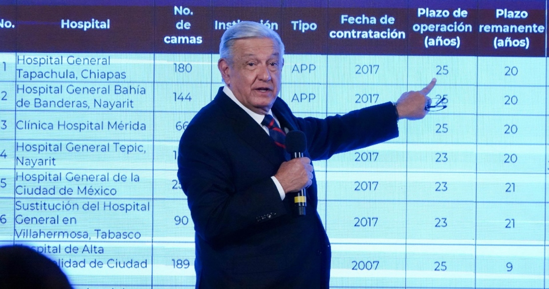 “Ahora estamos viendo cómo revisamos contratos o de plano adquirimos, compramos, 12 hospitales que hicieron empresas y le rentan al Gobierno el servicio. El Gobierno les paga por el servicio, pero son hospitales hechos por empresas y se les paga anualmente por el servicio, y consideramos que estos contratos son perjudiciales para la hacienda pública, es decir, se afecta la economía del pueblo", afirmó.