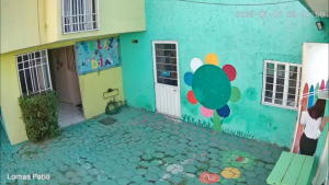 Al inicio del video, se observa cómo la maestra abre parcialmente la puerta principal del colegio y una mujer le hace una pregunta con un tono amable.