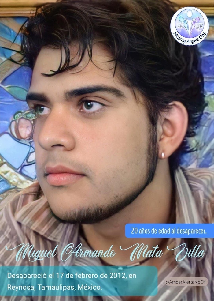 Miguel Armando Mata Villa desapareció el 17 de febrero de 2012 en Reynosa, Tamaulipas, cuando tenía 20 años. La última vez que habló por teléfono con su madre, María Elena, fue dos días antes. Ella lo notó asustado cuando le contó que lo habían detenido a mediodía en un retén militar, pero le pidió que no se preocupara. Lo acompañaban diez compañeros de trabajo, con quienes se dedicaba a intercambiar muebles por pedacería de oro. Desde ese día, no se sabe nada de su paradero.