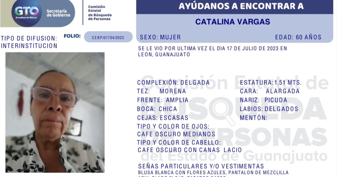 El pasado de 20 julio fue reportada la desaparición de Catalina Vargas cuyo paradero era desconocido desde el 17 de julio.