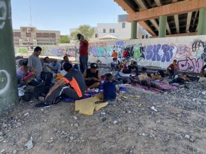 Los migrantes se encontraban durmiendo sobre cartones y cobijas acomodados casi frente a las instalaciones del Consejo Estatal de Población (COESPO) y junto a las vías del tren, en la zona Centro, cuando llegaron los agentes de la Guardia Nacional para ordenarles a gritos y con disparos que se retiraran del lugar.