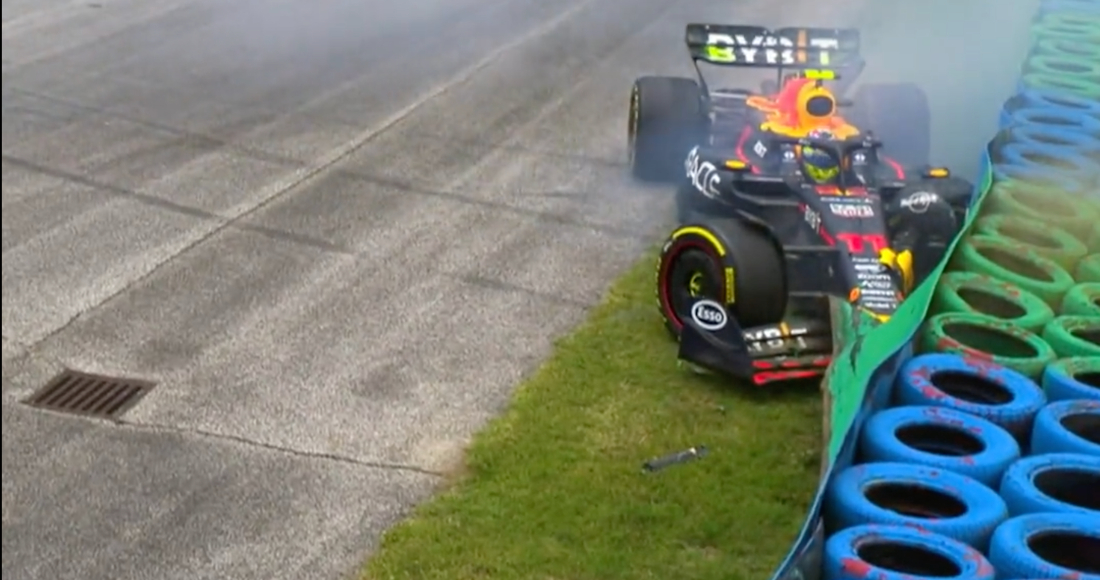 El auto de "Checo" quedó más dañado que el del británico y por ello el mexicano fue cayendo en el clasificador hasta quedar en los últimos lugares e inclusive se llegó a despistar. Ya con muy poco que ganar y mucho que perder, Red Bull optó por retirar el auto de Pérez ya pensando en la carrera del domingo en la que arrancará segundo.