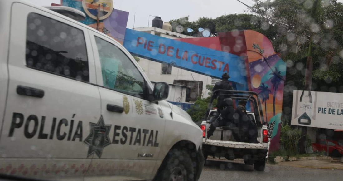Un convoy de seguridad de los tres órdenes de Gobierno, junto con elementos de la Marina y la Sedena recorrieron hasta el pueblo turístico de Pie de la Cuesta.