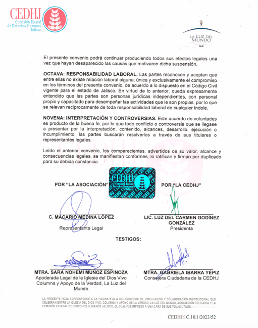 La Luz del Mundo remarcó en su comunicado oficial que las dos partes acordaron realizar capacitaciones y actividades de difusión para promover el respeto de los derechos humanos, en particular para combatir la discriminación por cualquier motivo.