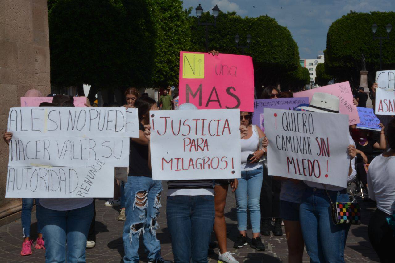 León, Gto, 14 de agosto (ZonaFranca).- Al grito de "¡No estamos todas, nos falta Milagros!", mujeres salieron a protestar el domingo a las calles de León entre ellas, la mamá de Milagros, su hermana y demás familiares de la mujer que fue asesinada el pasado jueves 10 de agosto, cuando se dirigía a su trabajo.