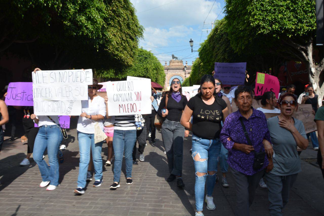 Aproximadamente a las 16:45 horas, mujeres de la sociedad civil e integrantes de la Red Feminista de León salieron del Arco de la Calzada para continuar la protesta por la calle Madero.