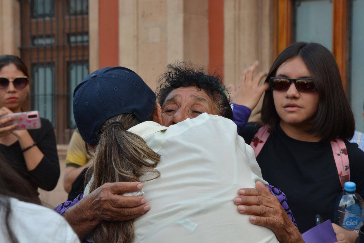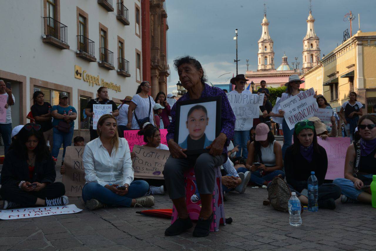 Las mujeres y familiares de Milagros llegaron a la Presidencia Municipal, ahí armaron un círculo y en medio la señora Ernestina se quedó sentada en un banquillo, mientras se leían unas consignas y solicitudes para la no repetición.