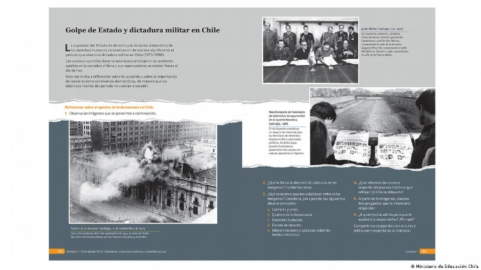 Chile, 20 de agosto (DW).-- Medio siglo ha pasado desde el golpe militar en Chile , y en las escuelas sigue causando controversia la enseñanza de la historia de la dictadura (1973-1990). Desde el retorno a la democracia, los planes del Ministerio de Educación han incluido progresivamente la revisión de este período y de la violación sistemática de los derechos humanos, explica a DW Viviana Castillo, coordinadora nacional de la Unidad de Currículum y Evaluación del Ministerio de Educación.