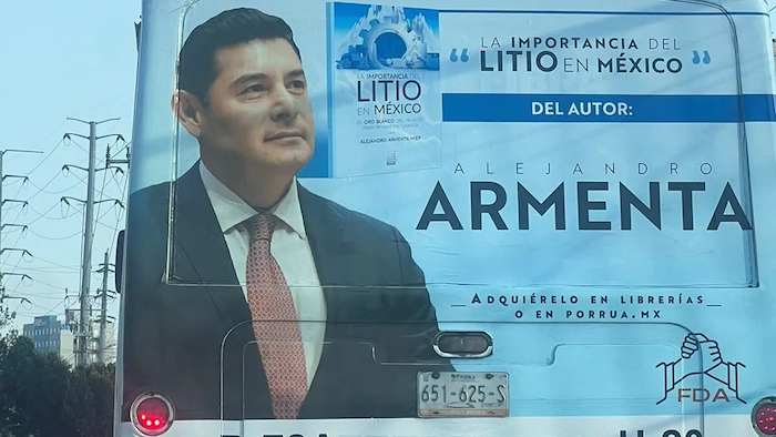 Ciudad de México, 22 de agosto (SinEmbargo).– La imagen del Senador morenista Alejandro Armenta Mier se promueve desde febrero pasado en espectaculares, bardas y camiones del estado de Puebla de cara a la elección de Gobernador que se llevará a cabo en 2024, pero con el pretexto de promocionar su libro La importancia del litio en México.