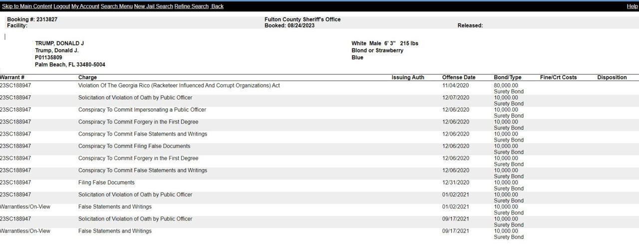 Sin embargo, su comparecencia en Atlanta será diferente. A diferencia de otras ciudades que no le exigieron una fotografía policial, no es el caso en Fulton.