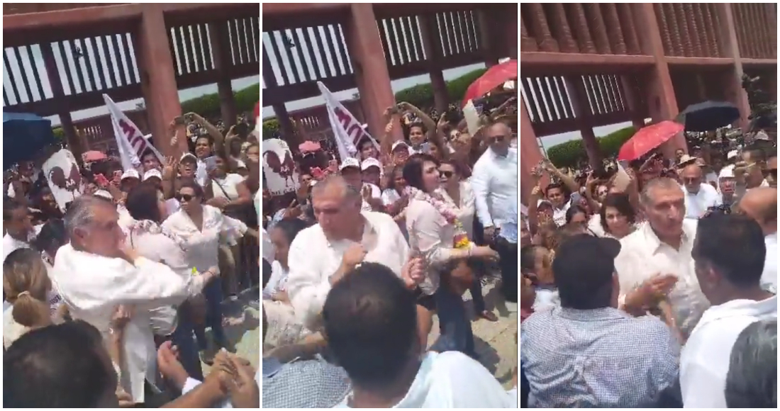 En el material puede verse cómo ella sujeta a Adán Augusto por el brazo, junto con otro hombre que también lo toma por detrás, para aparentemente guiarlo entre la multitud; sin embargo, el exsecretario reacciona con un codazo que le propicia a la legisladora con el fin de zafarse.