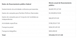 Rubro de financiamiento público federal 2024. Foto: Captura de pantalla