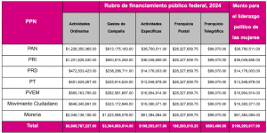 El financiamiento que corresponde a cada partido político para el ejercicio 2024 es el siguiente: