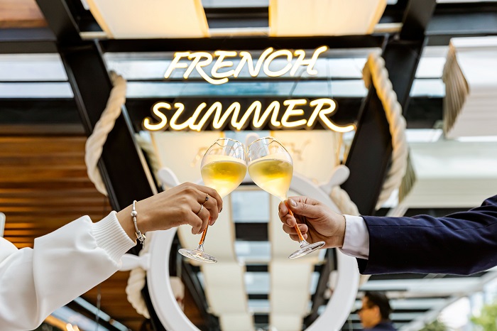 El cóctel "Bateau Coule" transporta a la serenidad de las playas francesas, combina Whispering Ángel y frutos rojos: otra opción es dejarse llevar por la travesía de un alegre marinero que, tras días en alta mar, llega a un animado puerto en la Riviera Francesa, con Hennessy Very Special, un toque de Chambord, ginger beer y jugo de piña en el cóctel "Le marin ivre".