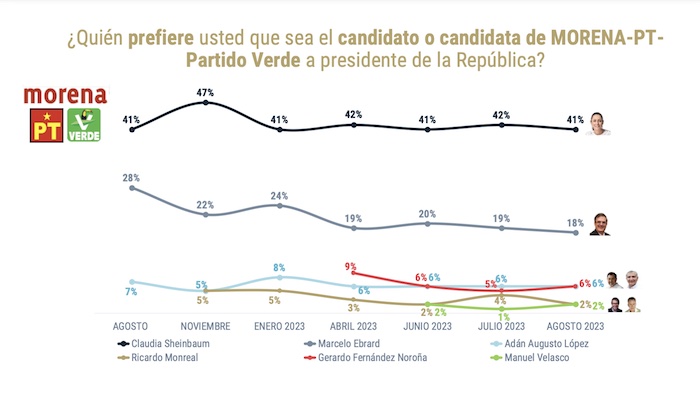 Ciudad de México, 1 de septiembre (SinEmbargo).- La mayoría de las encuesta publicadas durante el pasado mes de agosto anticipan una victoria de la exjefa de Gobierno de la ciudad de México, Claudia Sheinbaum Pardo, para encabezar los comités de defensa de la Cuarta Transformación y, por ende, ser la candidata de Morena a la presidencia de la República en los comicios de 2024.