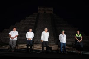 El mandatario inauguró la zona arqueológica de Chichen Itza Viejo y, en el segundo día del recorrido a bordo del Tren Maya, el Presidente estuvo acompañado por su hijo Andrés Manuel López Beltrán, funcionarios de su gabinete y el Gobernador de Yucatán, Mauricio Vila.