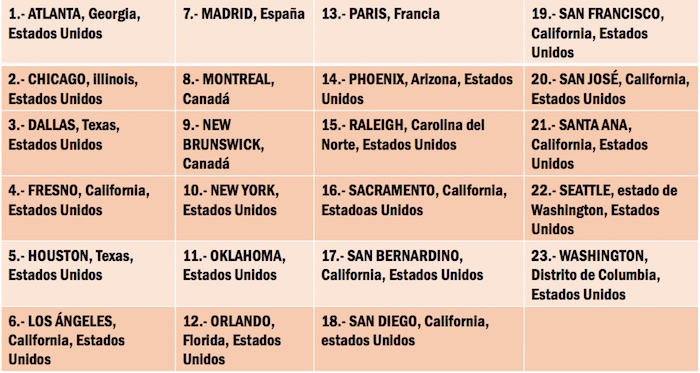 El día de la Jornada Electoral deberán acudir a alguno de los Módulos Receptores de Votación que el INE habilitará en 23 sedes en el extranjero, y presentar su Credencial para Votar vigente tramitada en el extranjero o en México, en las ciudades (en orden alfabético) de: