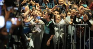 La señora Silvia, una de las cientos de asistentes, dijo entre lágrimas que la admira desde que fue delegada en Tlalpan y se congratuló de que por primera vez una mujer pueda ser Presienta.