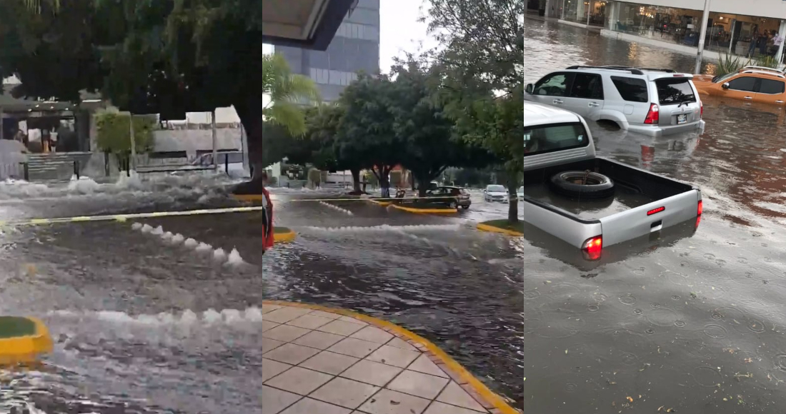 Inundaciones por la tormenta de esta tarde en #Zapopan.