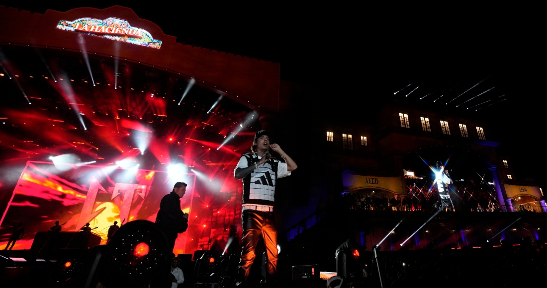 Horas después llegó el turno de Peso Pluma, quien arribó a la primera edición del festival como uno de los artistas más escuchados a nivel mundial con éxitos como “Lady Gaga”, “PRC” y “Ella baila sola”. El cantante originario de Guadalajara, Jalisco, apareció en el escenario principal con un pasamontañas negro, como el que luce en la portada de su álbum “Génesis”, ropa deportiva negra y un solo guante blanco en la mano derecha.