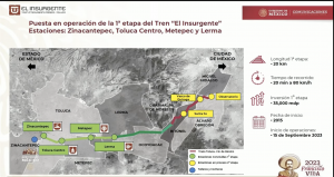 Gómez Álvarez, por su parte, detalló que, una vez en su funcionamiento completo, el Tren México-Toluca tendrá una demanda diaria de unas 230 mil personas en siete estaciones.