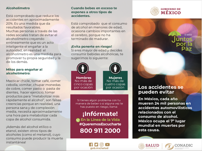 Hasta 2019, México ocupaba el séptimo lugar a nivel mundial en muertes por consumo de alcohol, según información difundida por el Gobierno federal, y, detalló, que en el país 24 mil personas fallecen durante accidentes automovilísticos relacionados con el consumo de alcohol.