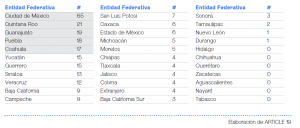 En cambio, Hidalgo, Chihuahua, Querétaro, Zacatecas, Aguascalientes, Nayarit y Tabasco, fueron las únicas entidades sin ningún caso registrado.