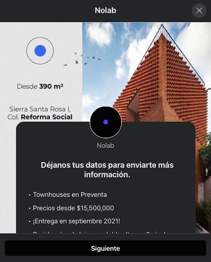 Todavía es posible consultar en la página de Facebook de Guadalupe Alonso Norma, en un post del 7 de agosto, la publicidad de la venta de las cinco casas de 390 metros cuadrados de construcción, en la calle Sierra Santa Rosa 62, en 15.5 millones de pesos, es decir, 5 millones 732 mil pesos menos de los 9 millones 768 mil pesos que pagó Xóchitl Gálvez.