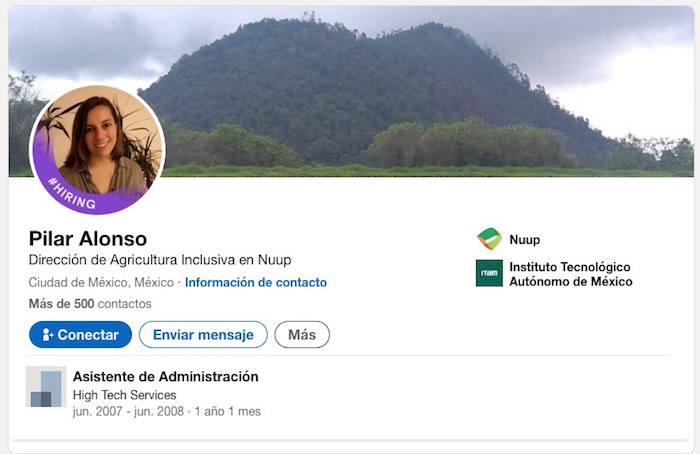 La otra hija de la vendedora, María del Pilar Alonso Norma, refiere en su perfil de Linkedin que trabajó como “asistente de administración” en High Tech Services, de junio de 2007 a junio de 2008, empresa de la que Xóchitl Gálvez es socia y su hija, Diana Vega Gálvez, es la representante legal.