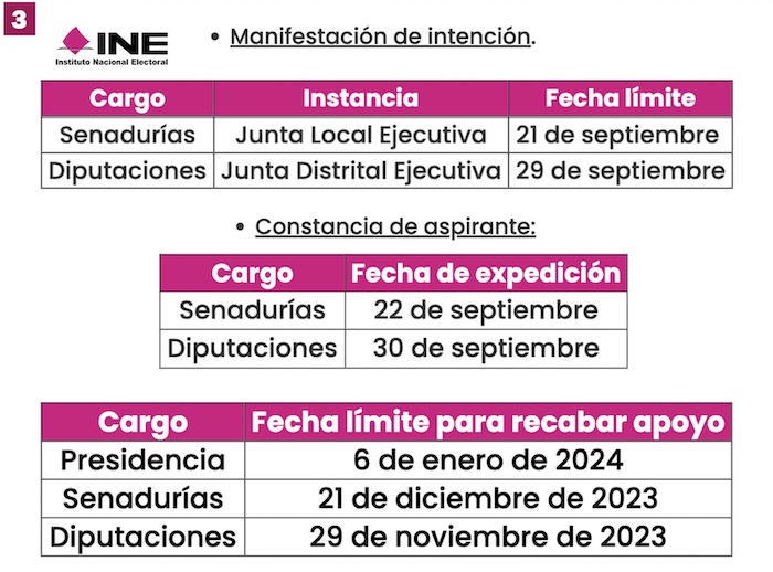 Ahora bien el próximo 29 de septiembre se vence el plazo para que los ciudadanos que aspiren a contender por una candidatura independiente a la Cámara de Diputados de la Federación manifiesten su intención de participan y se registren ante el Instituto Nacional Electoral (INE), que determinará quienes cumplen los requisitos para ser validados como aspirantes y pueden empezar a recabar firmas de apoyo.