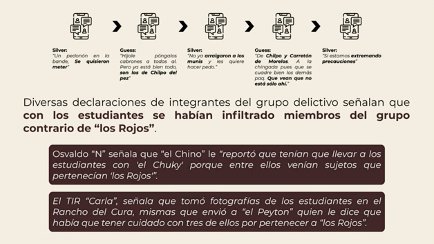 Asimismo, reiteró que en ningún momento se identificó un vínculo de los normalistas con ningún grupo delictivo.