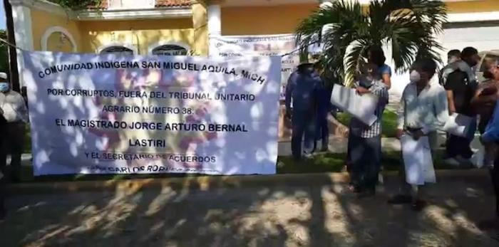 Además, a partir de ese año, un grupo de personas presentó decenas de demandas en contra de la comunidad agraria, para que se les reconociera como comuneros y, por lo tanto, se les integrara en la lista de quienes reciben el pago de la mina. “El comisariado de San Miguel Aquila, que está desde 2016, dejó que se perdieran los juicios, porque está coludido con esos demandantes”, acusó Lagunes.