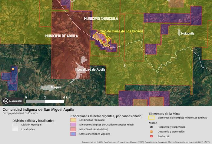 * En ese territorio indígena, la empresa Ternium —una de las principales productoras de acero en Latinoamérica— opera el complejo minero Los Encinos. Con la llegada de la minería, los cerros comenzaron a ser cercenados, el río Aquila dejó de tener langostinos y la comunidad se dividió. En esa región, además, hace tiempo que los grupos del narcotráfico dejaron de disimular su presencia.