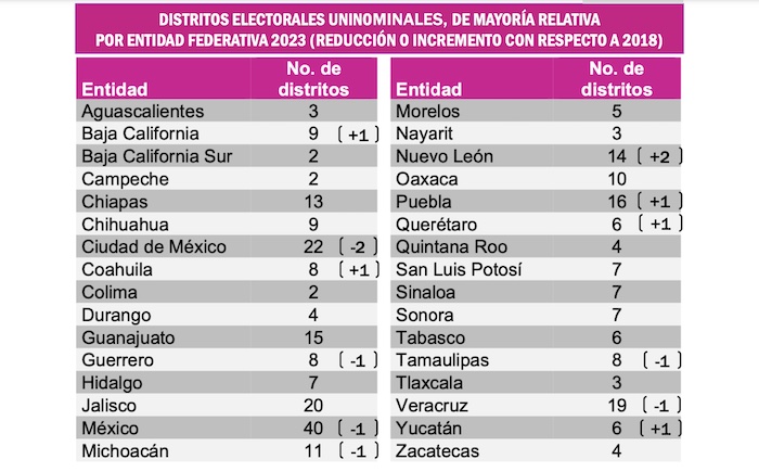 En el caso contrario, hubo algunos estados que ganaron distritos electorales como Nuevo León con dos, que pasó de 12 a 14 diputados federales. En tanto, Baja California, Coahuila, Puebla, Querétaro y Yucatán ganaron un distrito adicional más.
