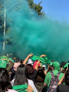 Este año, decidimos preparamos para tomar las calles en una sesión donde bordamos nuestros pañuelos verdes, al mismo tiempo que íbamos tejiendo en un diálogo íntimo, nuestra lucha y un entendimiento colectivo de la situación actual de los derechos sexuales y reproductivos. Como si cada puntada animara las palabras, nuestra compañera Mati comenzó contándonos cómo el presupuesto para la Salud Sexual y Reproductiva (SSyR) es hoy 14.45% más bajo que en 2019 (lo que representa en términos reales 466 millones menos). Con dolor y enojo confirmamos que nuestros derechos siguen sin ser una prioridad para el Estado mexicano.
