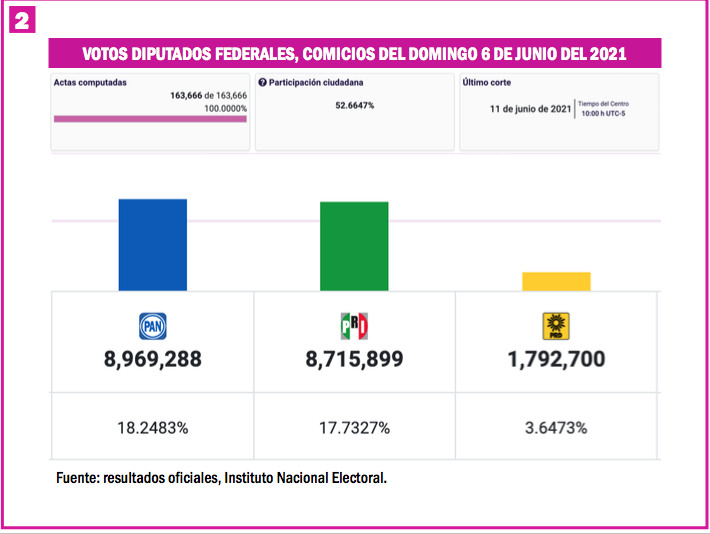 Ciudad de México, 4 de octubre (SinEmbargo).– Los resultados electorales oficiales del 6 de junio del 2021 son obligado punto de referencia para analizar el potencial escenario electoral que podríamos observar el domingo 2 de junio del 2024.