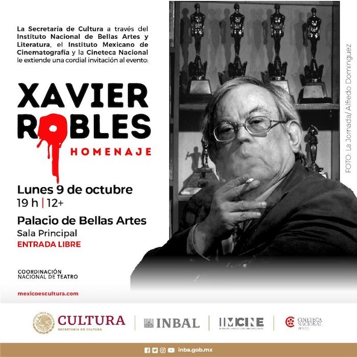 La Secretaria de Cultura a través del Instituto Mexicano de Cinematografía (IMCINE) y la Cineteca Nacional extienden la invitación para el homenaje que se celebrará el lunes 9 de octubre a las 19:00 horas en Bellas Artes con entrada gratuita.