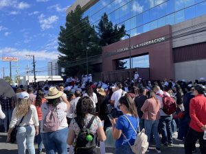 Ciudad Juárez, 15 de octubre (LaVerdad).- La maestra Dora Elia Espinoza, de sexto grado de primaria, no estuvo este viernes frente a su grupo, decidió plantarse frente al edificio de los juzgados federales en Ciudad Juárez para exigir que entreguen los Libros de Texto Gratuitos de la Secretaría de Educación Pública (SEP) a sus alumnos.