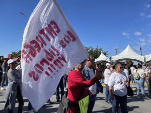 “Nos manifestamos por ese absurdo amparo de suspensión a la distribución de libros de texto gratuitos”, expuso Pedro Hidalgo Martínez, coordinador regional en Ciudad Juárez de la Sección 8 del Sindicato Nacional de Trabajadores de la Educación (SNTE).