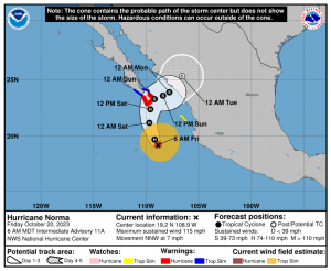 El #Huracán #Norma ocasionará hoy, #Lluvias intensas en #BajaCaliforniaSur, #Nayarit y #Sinaloa.