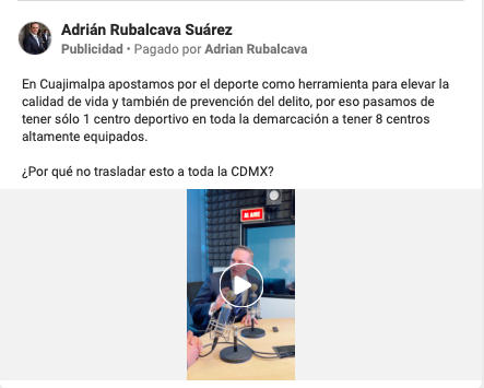 El priista Adrián Rubalcava, el sexto aspirante con mayor apoyo para ser el abanderado del PAN-PRI-PRD según la encuesta más reciente de Buendía & Márquez para El Universal, ha empleado 196 mil 921 pesos en lo que va del 2023 en anuncios pagados en Facebook e Instagram. Las publicaciones de paga más recientes ya hacen alusión a sus aspiraciones a la Jefatura de Gobierno.