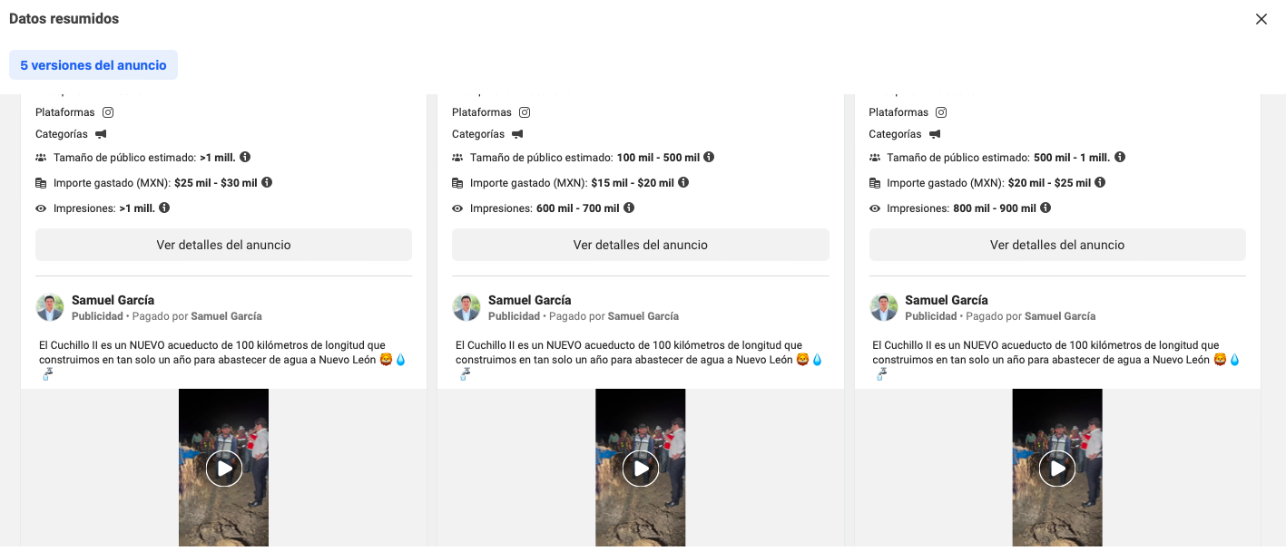 Es esta misma construcción la cual promovió García en anuncios pagados de Facebook valuados en más de 90 mil de pesos, semanas antes de registrarse como precandidato a la Presidencia de la República para las elecciones de 2024, aún cuando prometió que finalizaría su gestión.