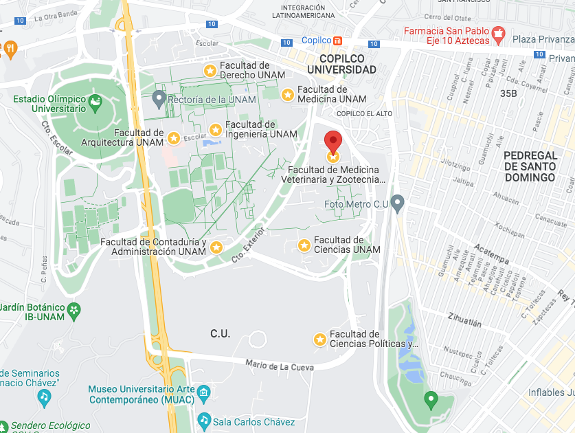 Mapa de las facultades de la UNAM en donde se han reportado más incidentes violentos de 2019 a la fecha. Foto: Google.
