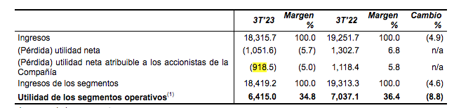 La siguiente tabla presenta los estados de resultados consolidados condensados, en millones de pesos, para los trimestres terminados el 30 de septiembre de 2023 y 2022: