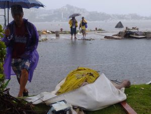 Flora Contreras Santos, un ama de casa de una zona humilde a las afueras de Acapulco, iba de soldado en soldado contando su historia de desdicha: una ladera se derrumbó sobre su casa de techo de lámina y la fuerza del lodo y del agua arrancó a una niña de tres años de los brazos de su madre. No la han vuelto a ver.