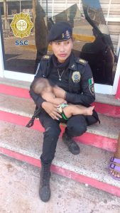 La oficial, al escuchar su crónica, le ofreció con previa autorización, darle alimento al menor ya que contaba con leche materna, debido a que en la Ciudad de México dejó en casa a su hijo y acudió a brindar auxilio a la población que más lo necesita en el puerto de Acapulco.