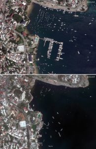 Señores encargados de la reparación de motores de lanchas, ubicados en la playa, comentaron que los yates de la élite y los que se rentan a turistas quedaron partidos en pedazos, como constatan imágenes de medios en los que se ven trozos de madera, proas…