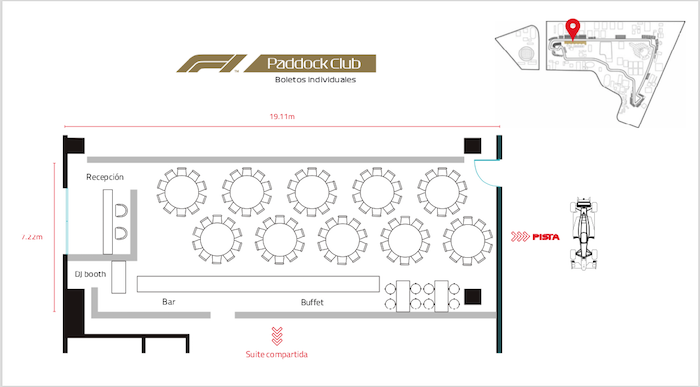 Mapa del Paddock Club. Foto: Corporate Suites